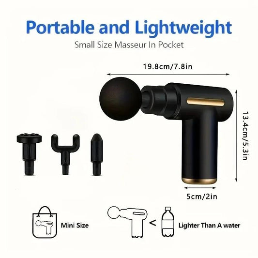 Portable Deep Tissue Massager - USB Rechargeable Fascia Gun, Muscle Massage Gun with 4 Massage Heads, 6 Speed Mode Adjustment, Silent Motor, for Muscle Relief and Sports Recovery, for Back and Neck Relaxation Full Body Massage